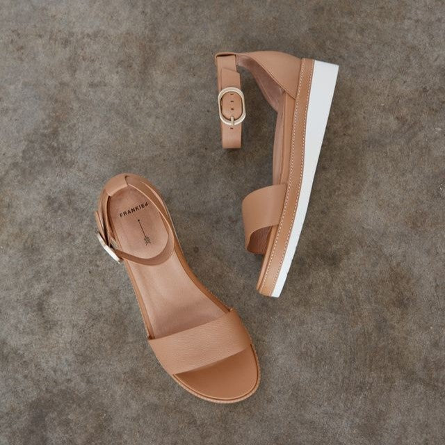Dress up without the downside; Skye in Soft Tan Tumbled brings an effortless lift to your everyday look. Fashion meets function with a flattering flatform, wedge silhouette set on a dual-density, lightweight sole. Designed with a closed back and adjustable ankle strap for secure wear, Skye is the modern sandal that lets your warm-weather style reach new heights without compromising on comfort.