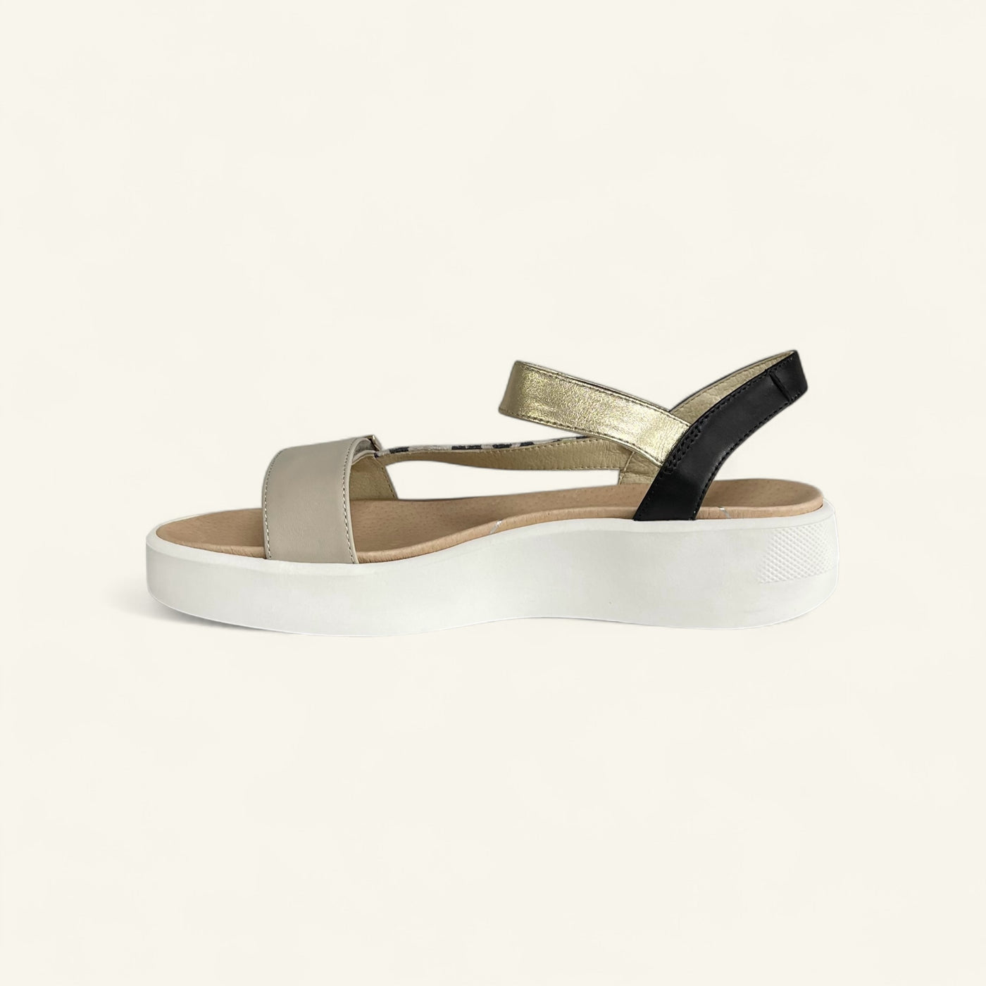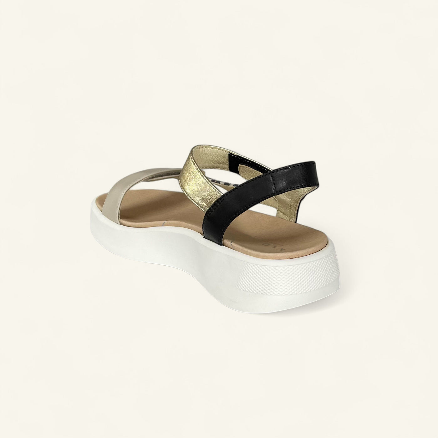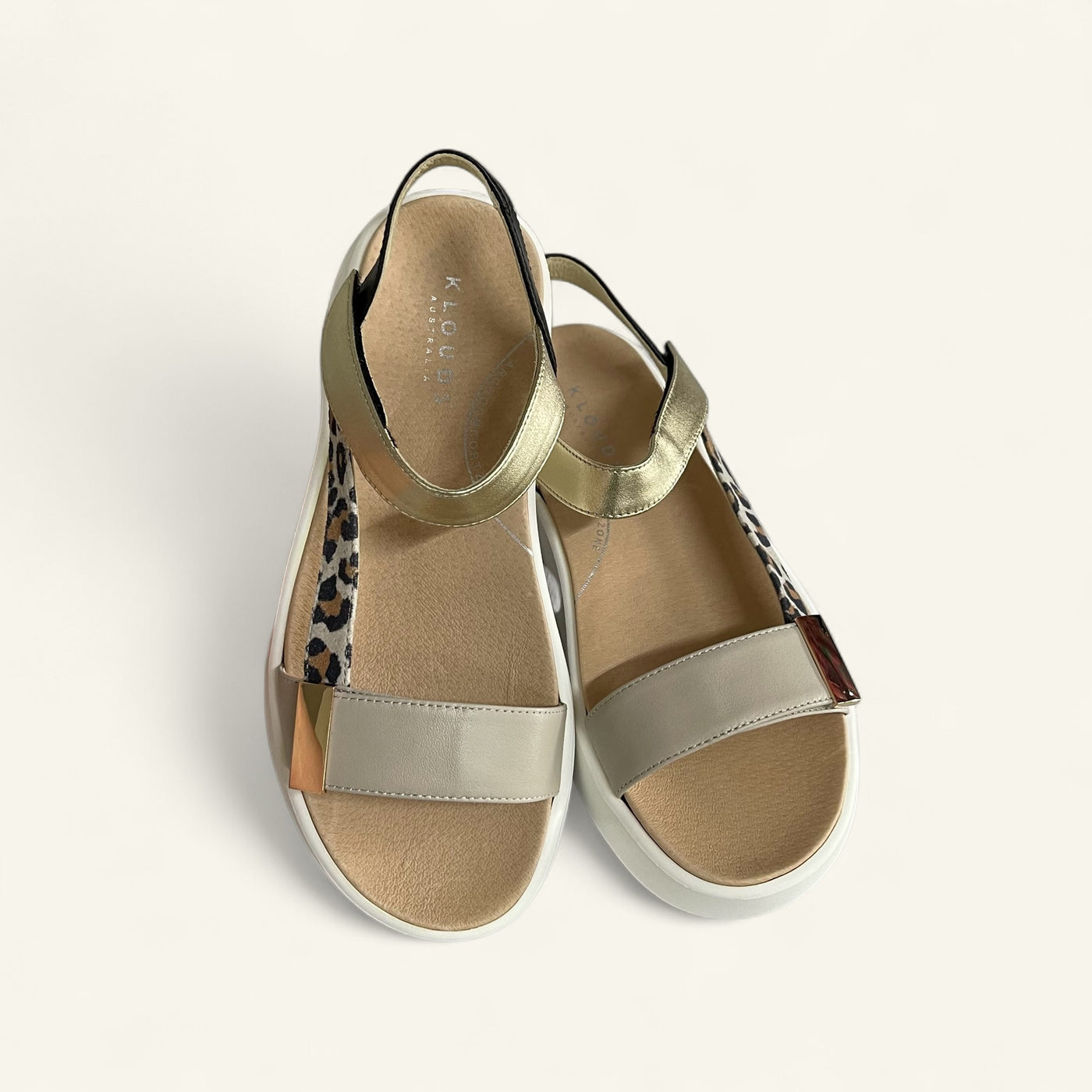 Step out in style and support with Ivory by Klouds, a fashionable travel sandal with a playful twist. Modelled on a popular sandal look, this extra-wide fitting style offers two points of hook-and-loop adjustment for a custom fit, built-in arch support for all-day comfort, and an off-white chunky sole that adds just the right amount of lift and trend appeal.