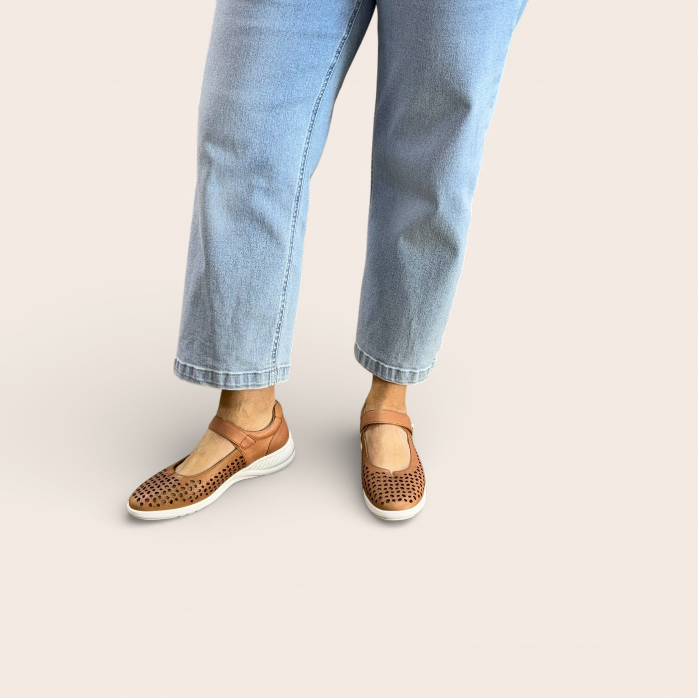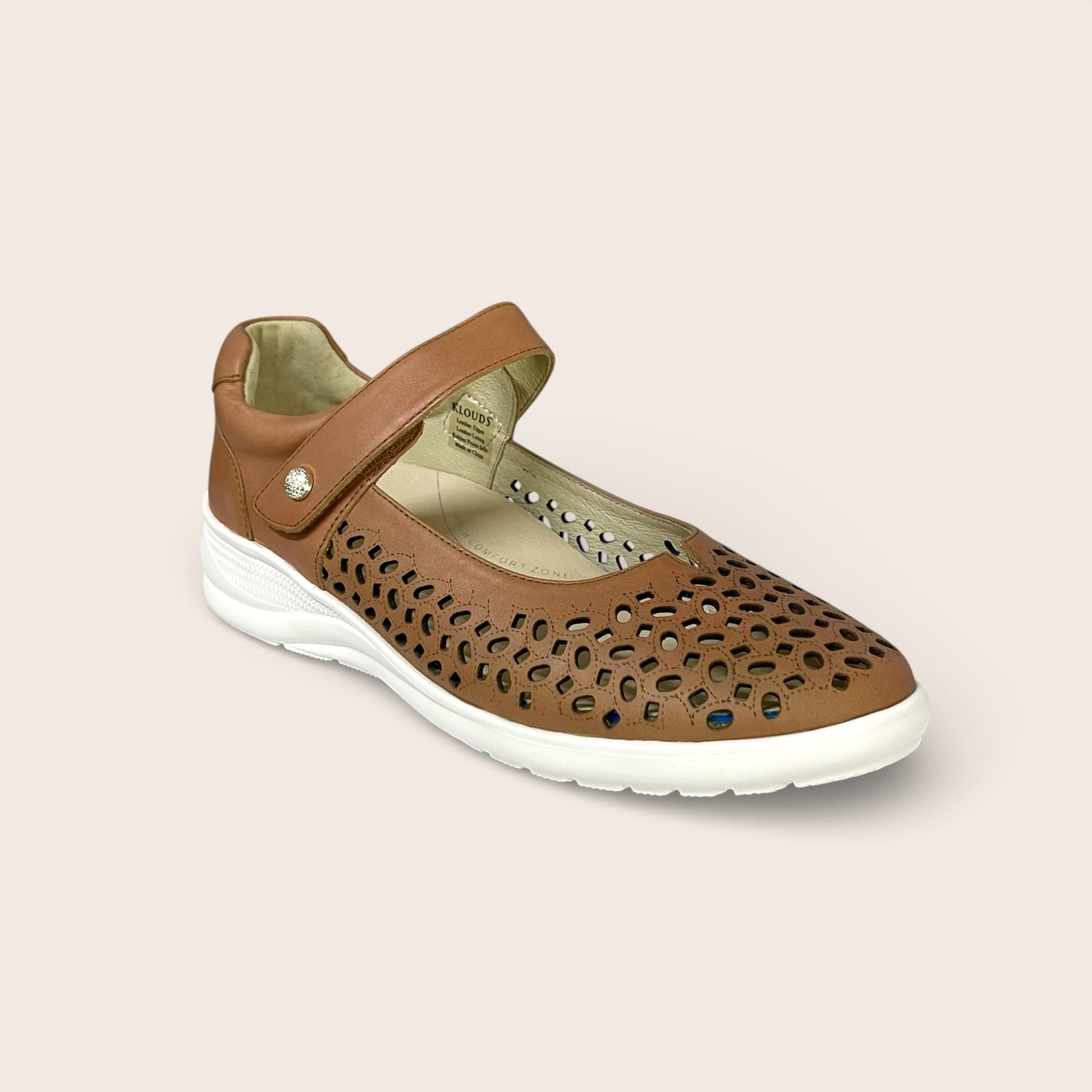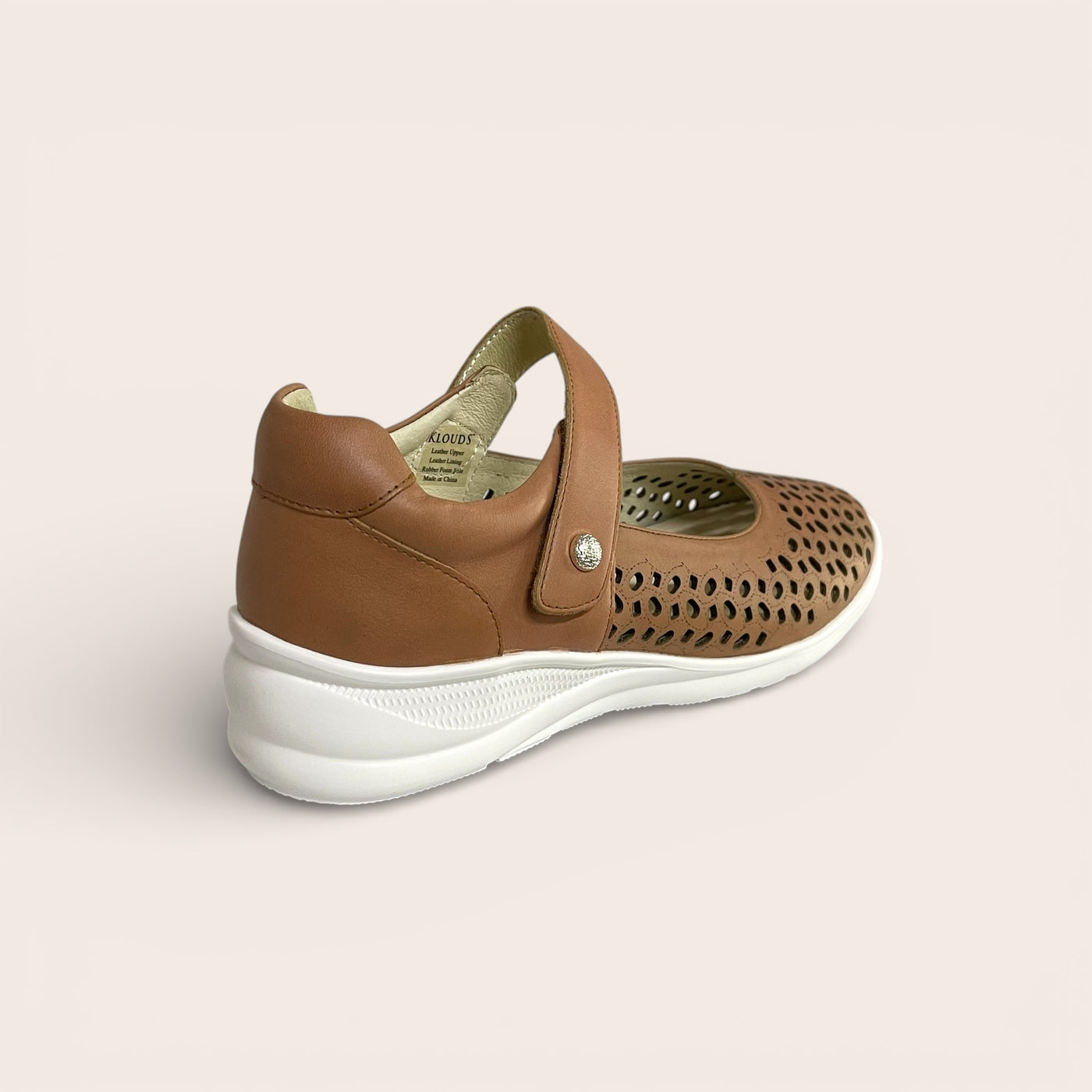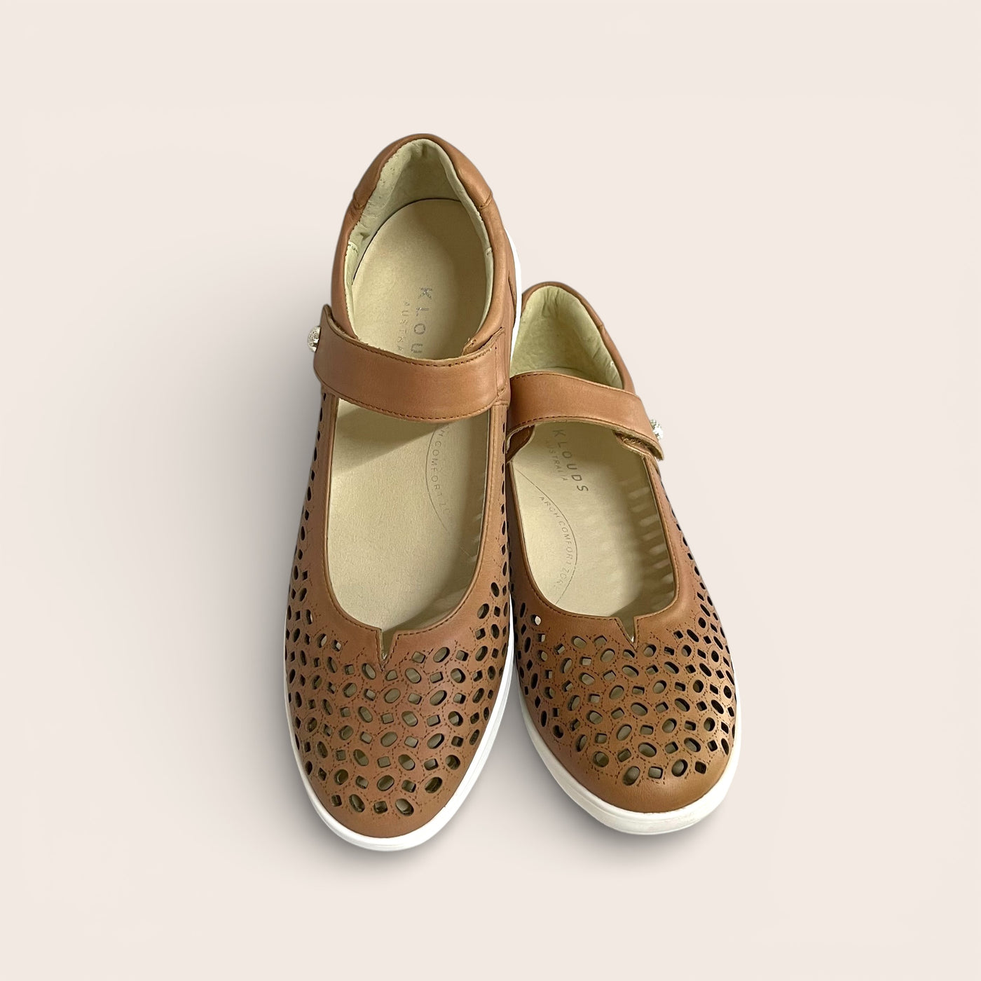 Blissed is the perfect blend of classic Mary Jane styling and signature Klouds comfort. Crafted in soft caramel leather, this lightweight design features delicate laser cut detailing for breathability and interest, while the metallic-accent strap adds a modern touch. Supportive, cushioned and beautifully wearable, Blissed is designed for all-day ease without sacrificing style.