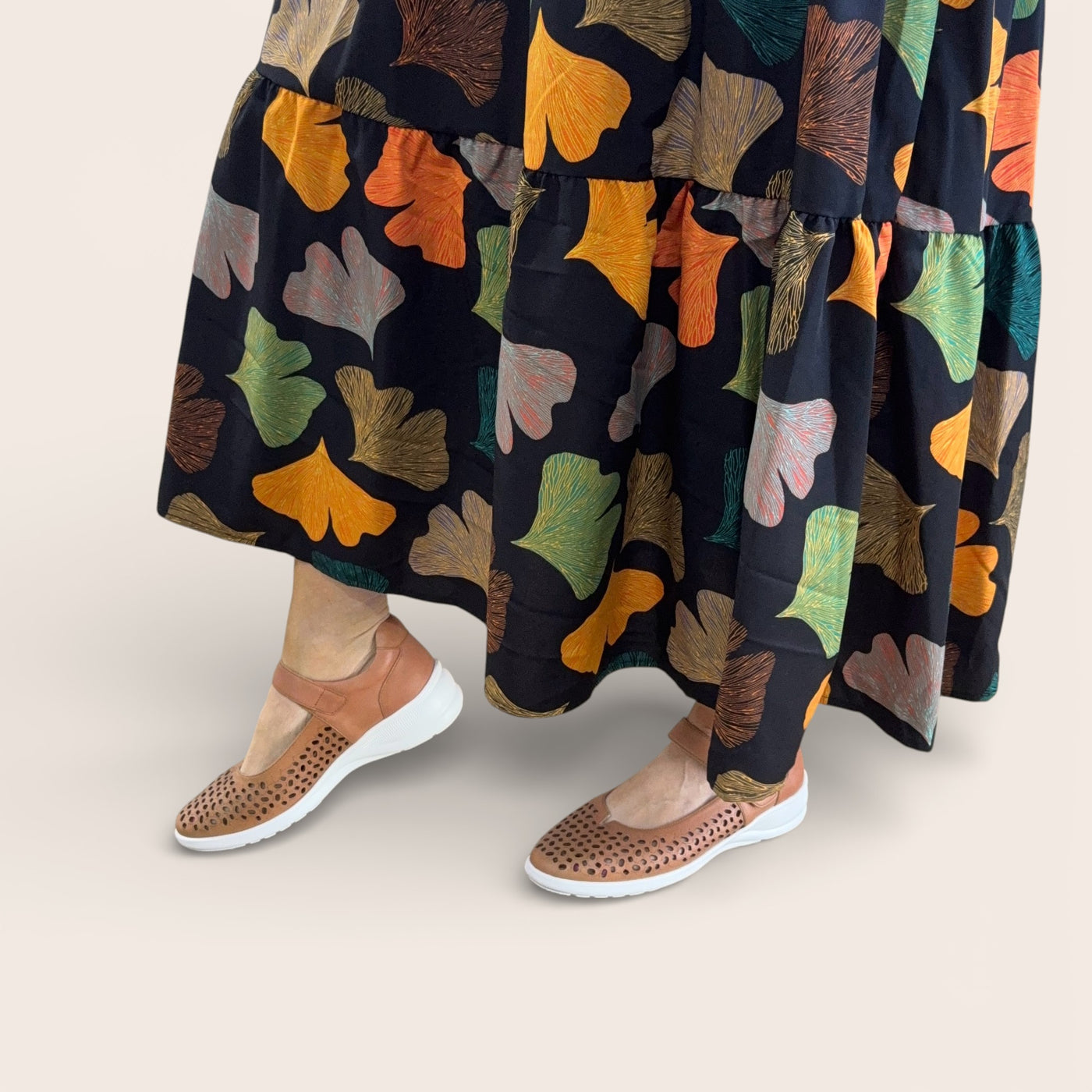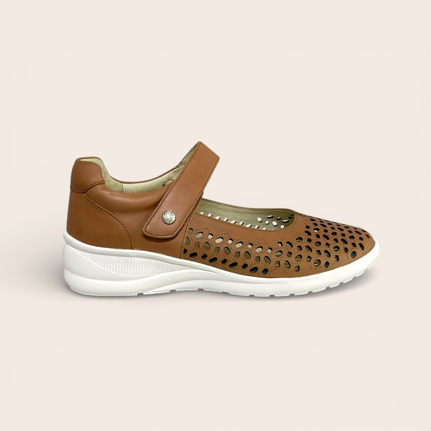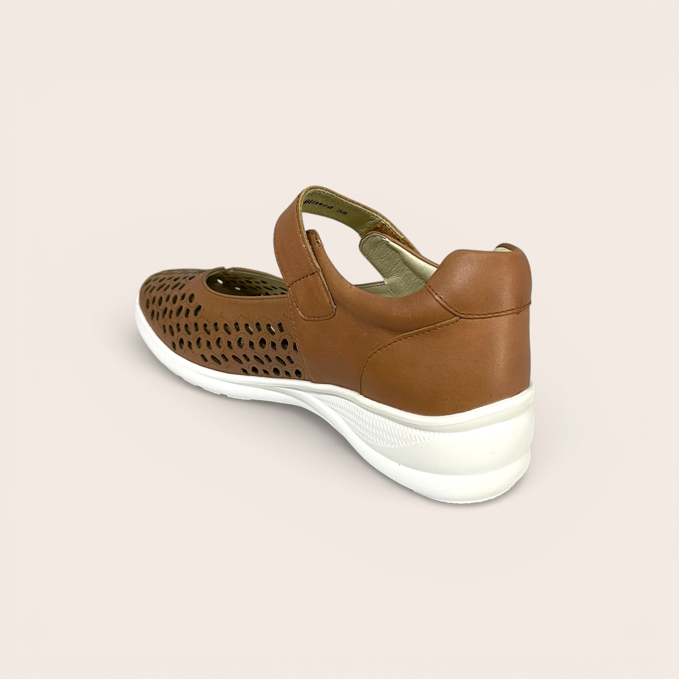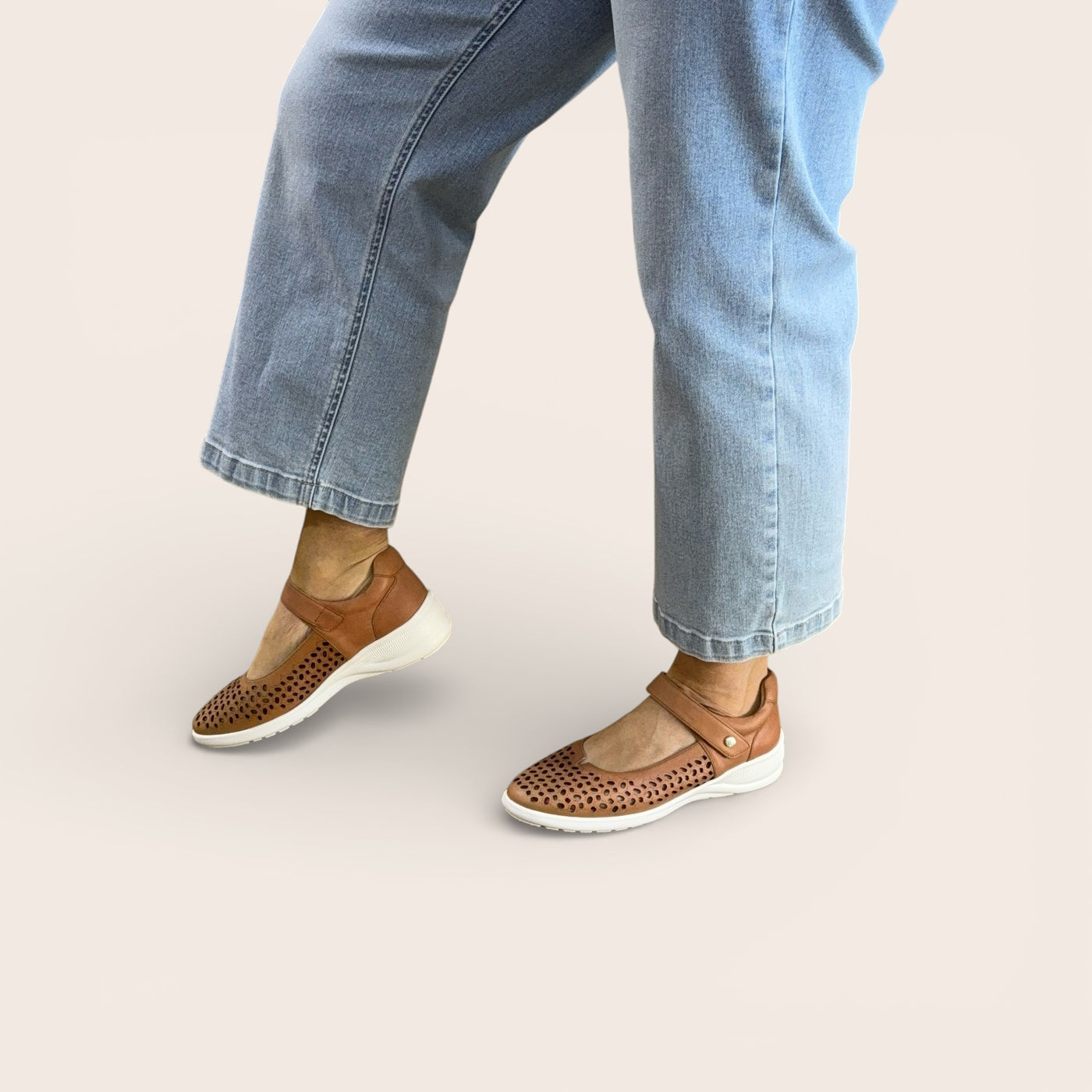 Blissed is the perfect blend of classic Mary Jane styling and signature Klouds comfort. Crafted in soft caramel leather, this lightweight design features delicate laser cut detailing for breathability and interest, while the metallic-accent strap adds a modern touch. Supportive, cushioned and beautifully wearable, Blissed is designed for all-day ease without sacrificing style.