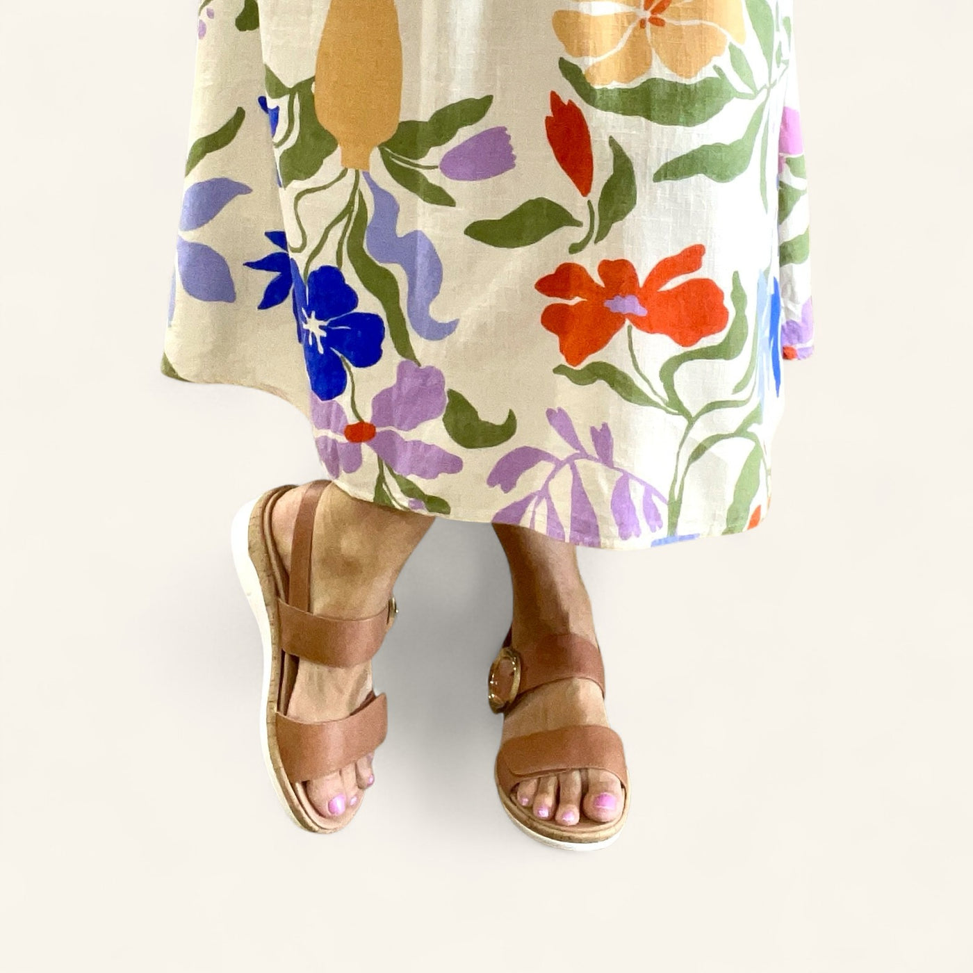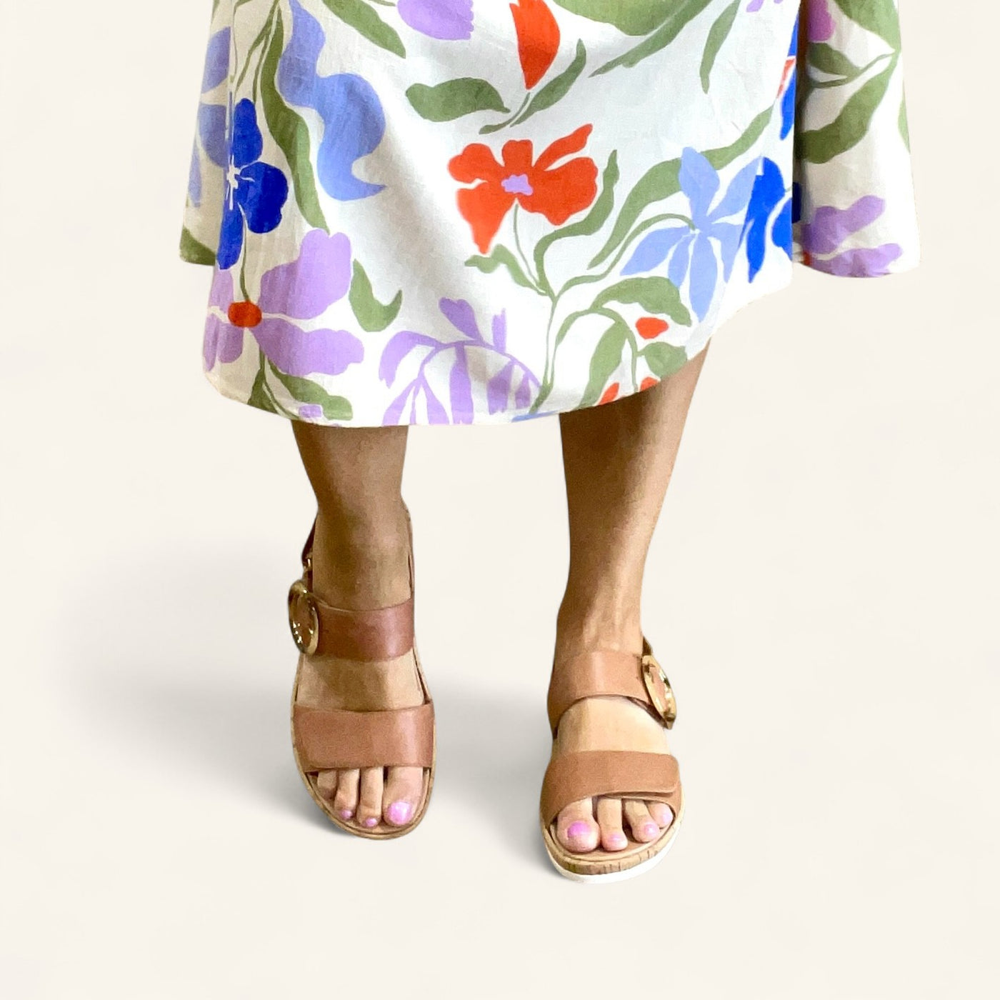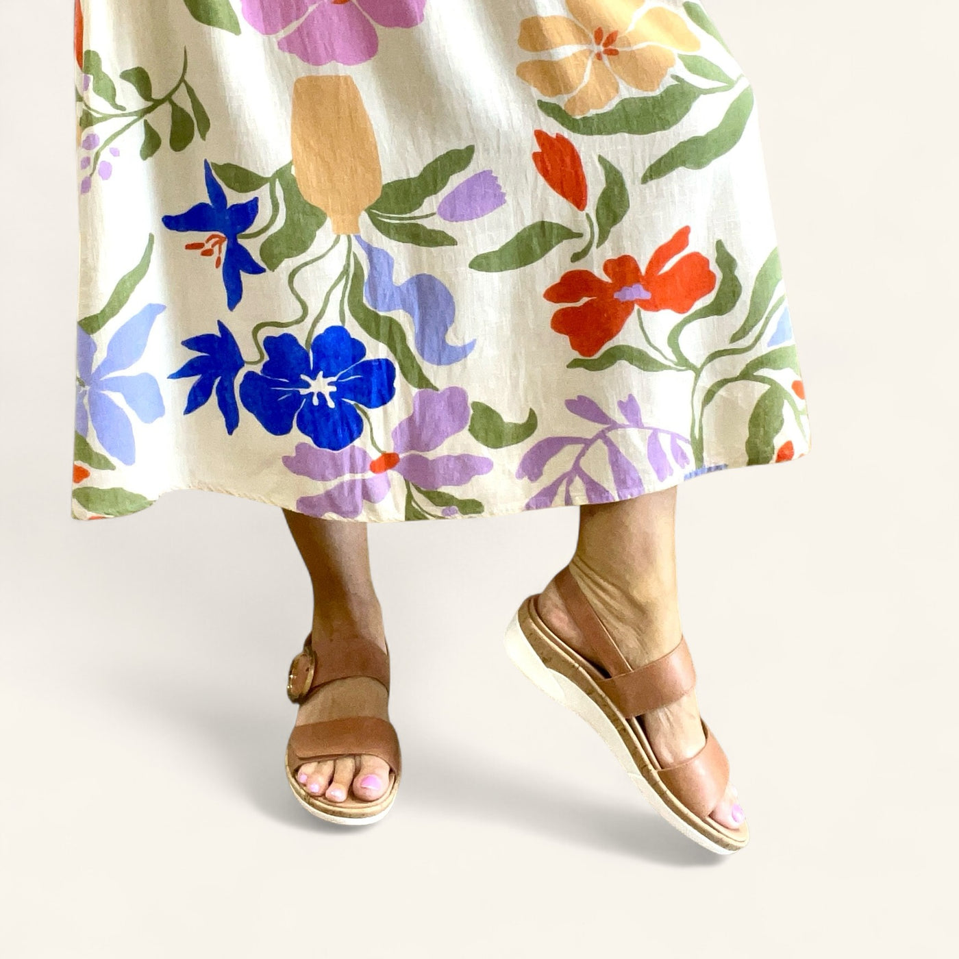 2: Style with a flowy midi dress and woven tote for everyday polish with comfort built in.