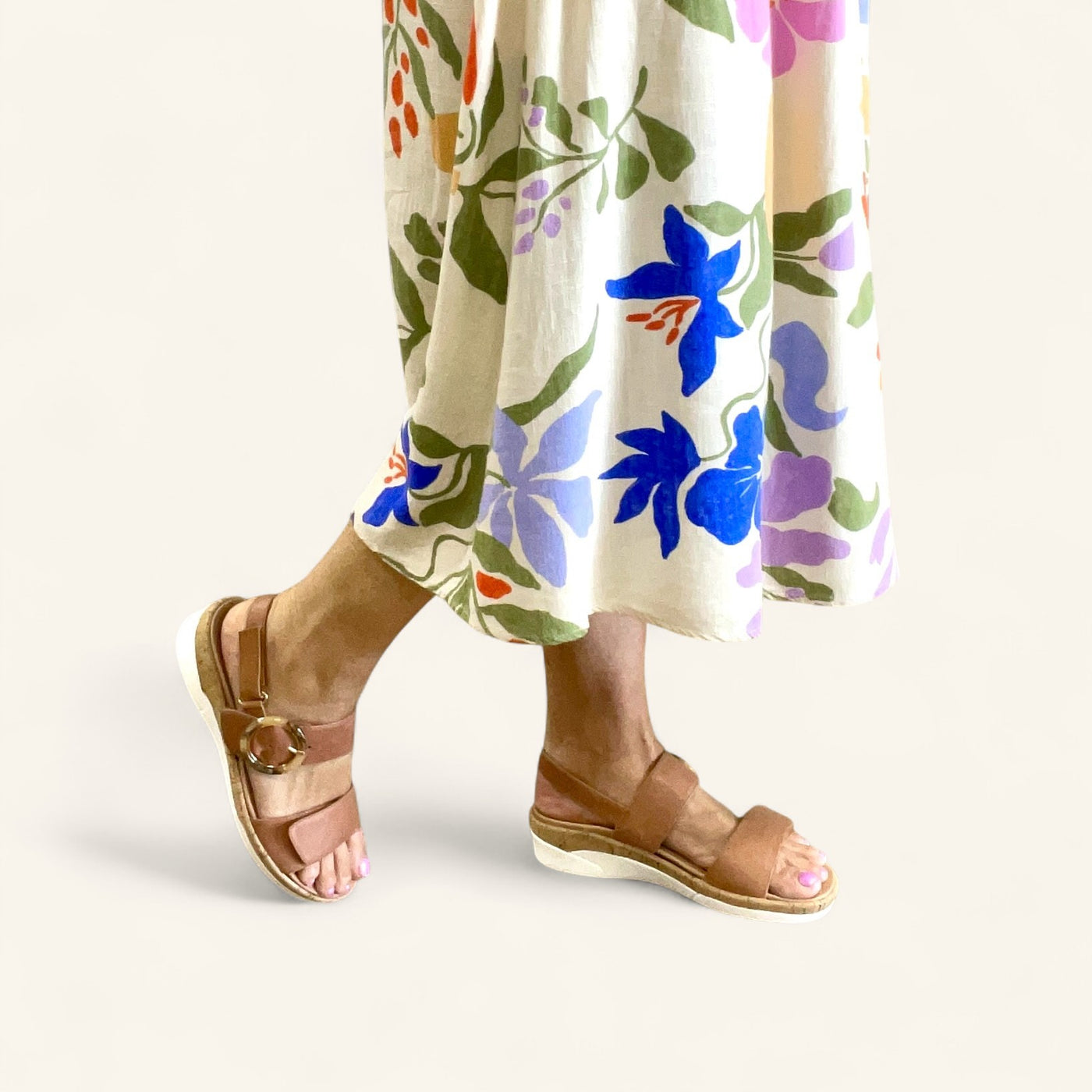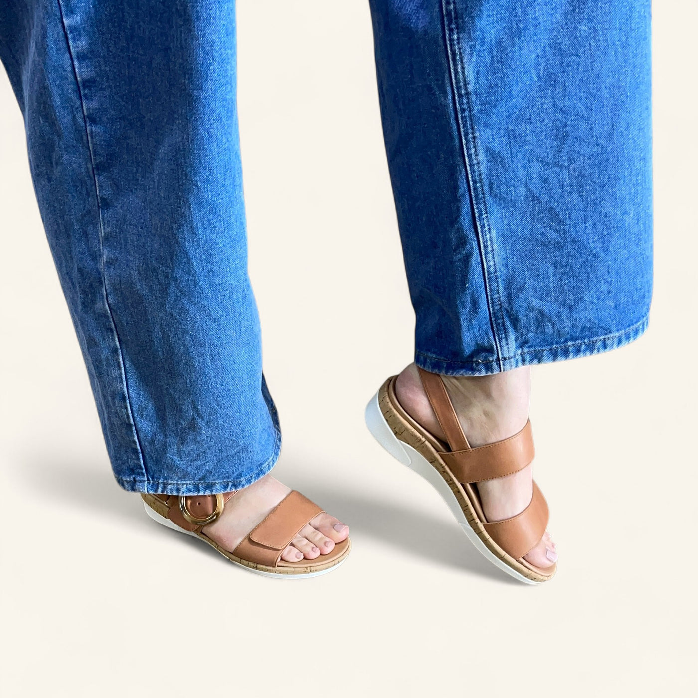 Eloise II by Klouds is the sandal made for easy, everyday wear. With a wide fit and three hook and loop adjustable straps for the perfect hold, this supportive style offers comfort that moves with you. The soft footbed features built-in arch support and can be swapped for your own orthotic, while the cork-look trim and statement buckle bring a touch of relaxed style. Finished on a lightweight white sole, Eloise II is the kind of comfort you’ll want to live in.