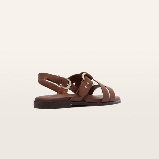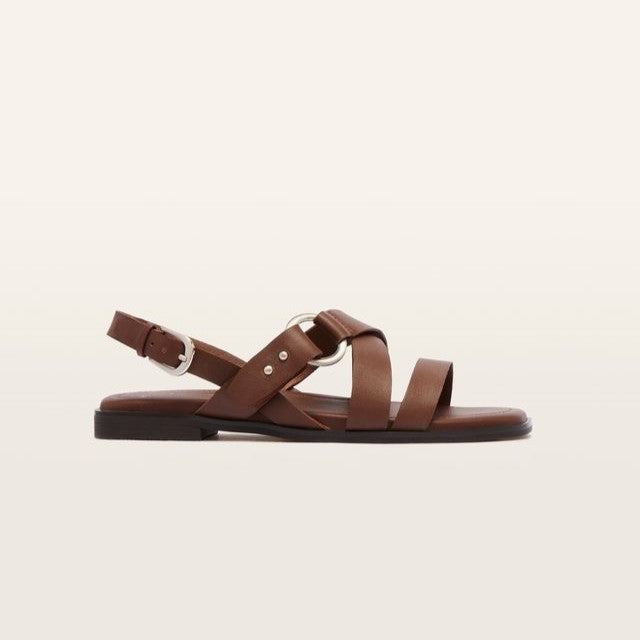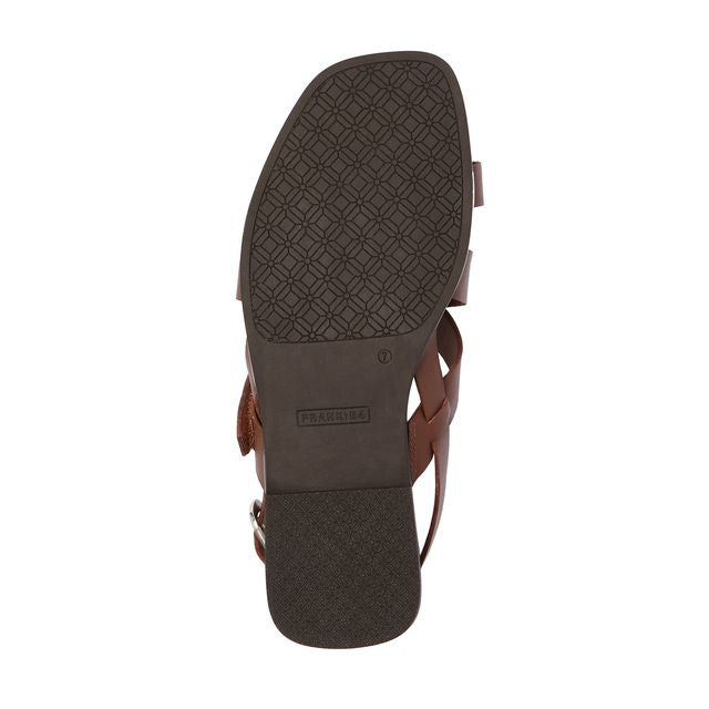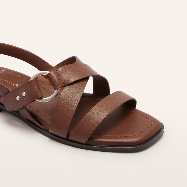 Finn in rich Deep Tan; the slimline style you need, with all the luxe comfort you crave. In classic tan leather, this sleek dress sandal features a flattering criss-cross upper and an elegant forefoot strap, paired with an adjustable vamp and back strap for a tailored fit. Silver-tone hardware adds a refined touch to this modern square-toe silhouette. For the ultimate luxe, light-on-foot feel, our podiatrist-designed LuxaLite® footbed delivers lightweight, contoured cushioning precisely where you want it.
