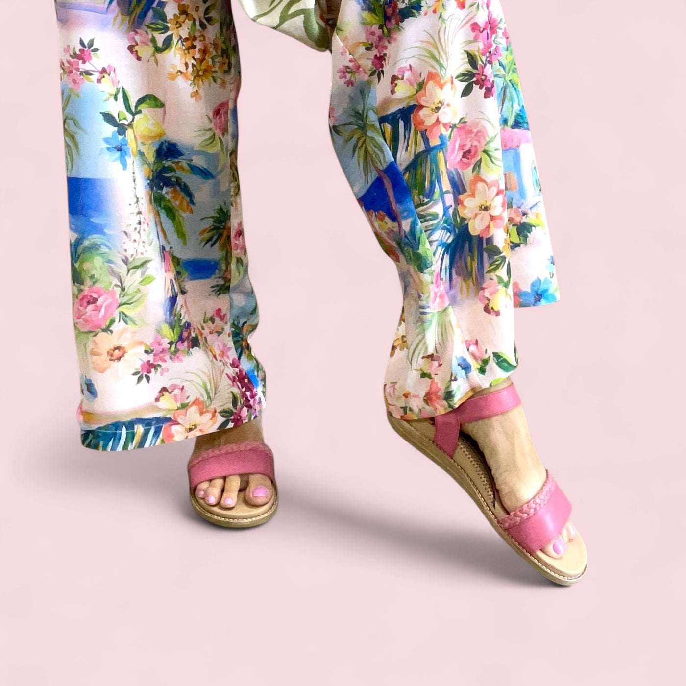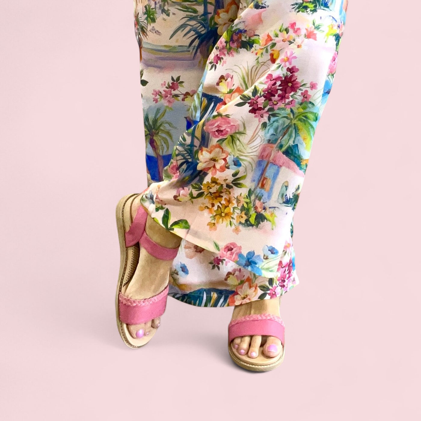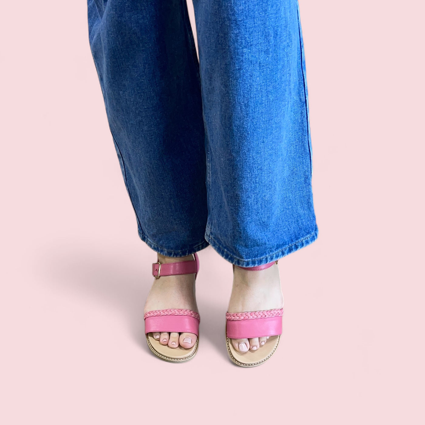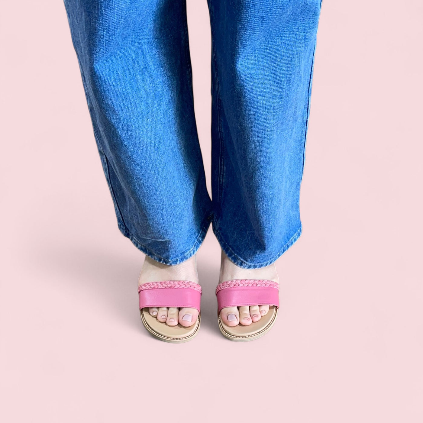 Hariet by Pure Comfort proves that comfort can be fun. In a soft pink leather with a wider fit and arch support, this sandal brings easy wear to every step. The front band features braided strap across the toes and adds a playful twist, while the small wedge and hook and loop adjustable ankle strap keep things stylish yet secure. A go-to when you want colour, comfort, and a little extra charm.