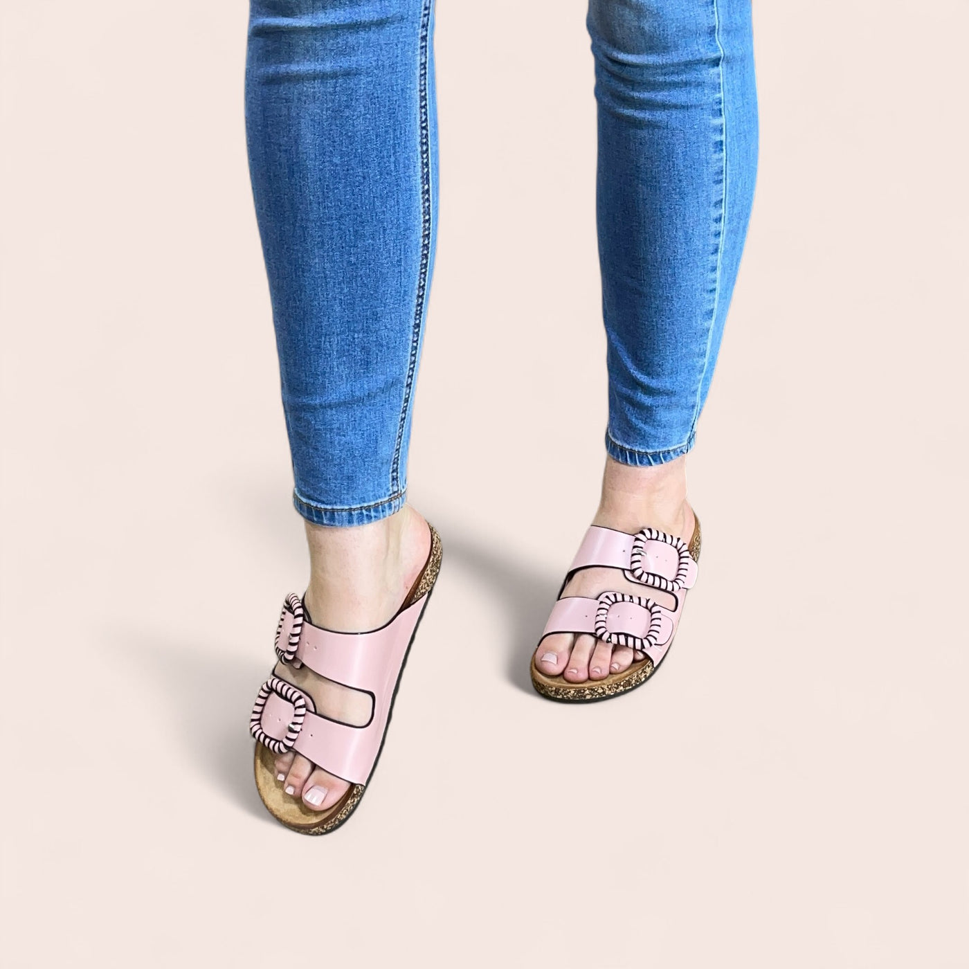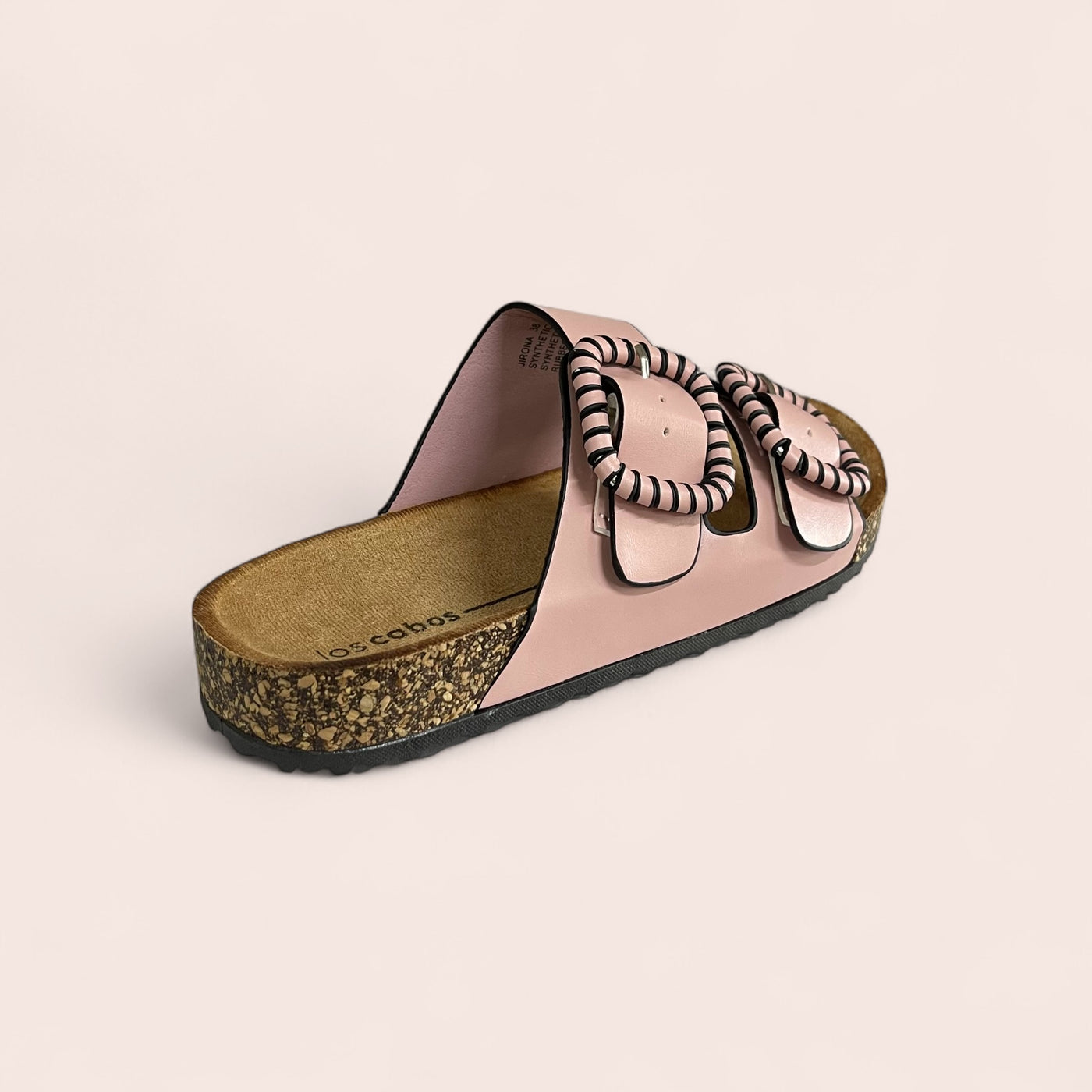 Meet Jirona by Los Cabos — the slide making a style statement this season. Its twin-strap design features oversized buckles with sleek black edging for that modern edge, balanced by a softly padded insole and cork-look sole for all-day comfort. Effortless, fashion-forward and perfectly pink — this is your sunshine-ready staple for the season.