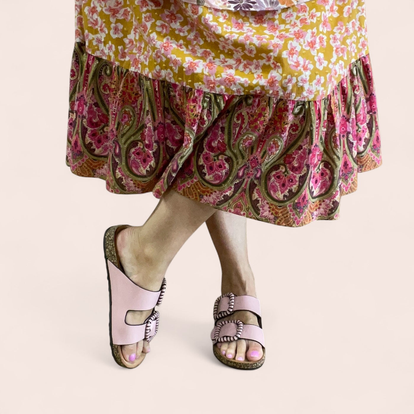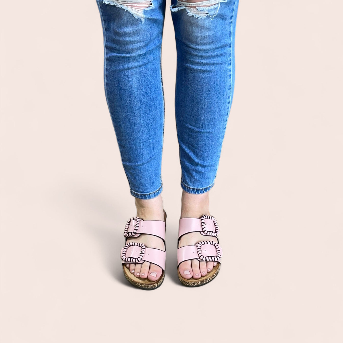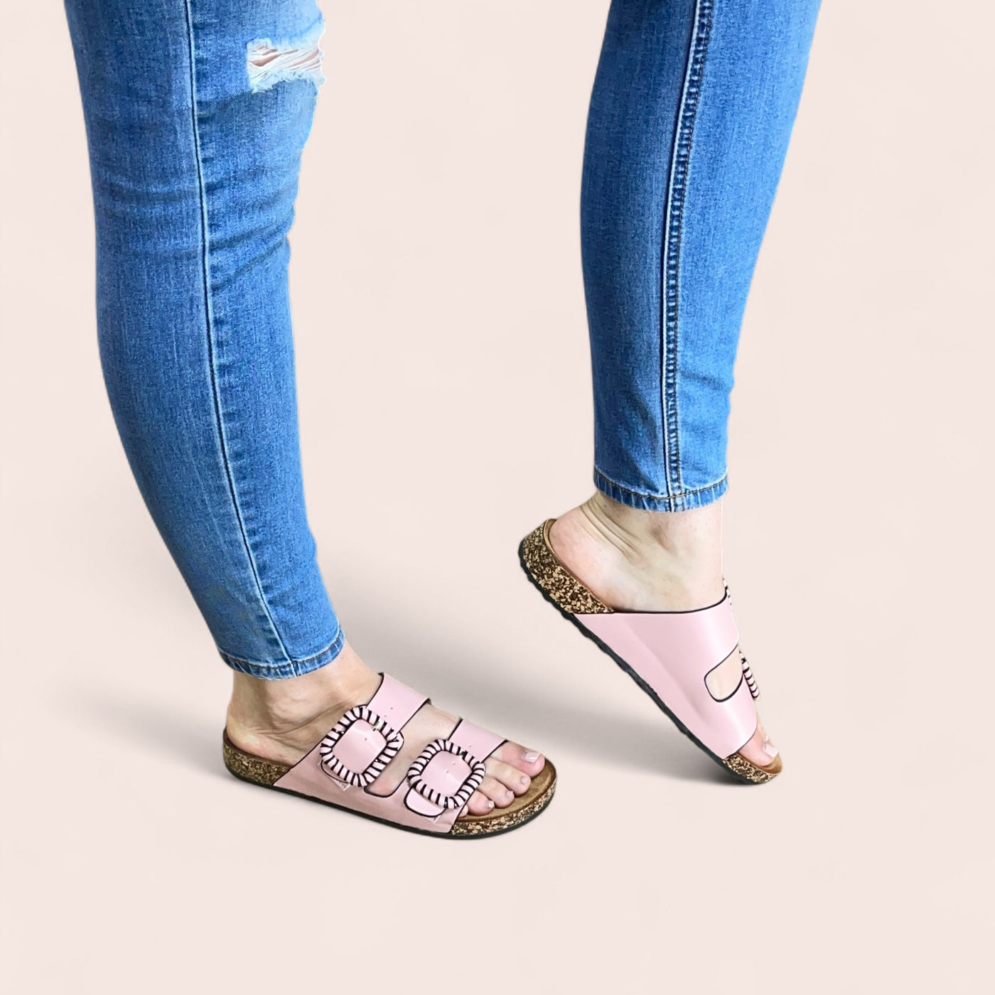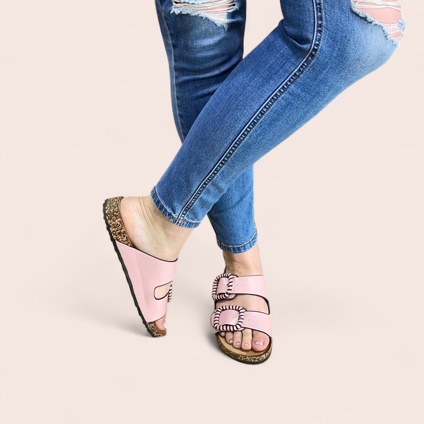 Los Cabos Jirona – PinkBold buckles, soft summer energy.
