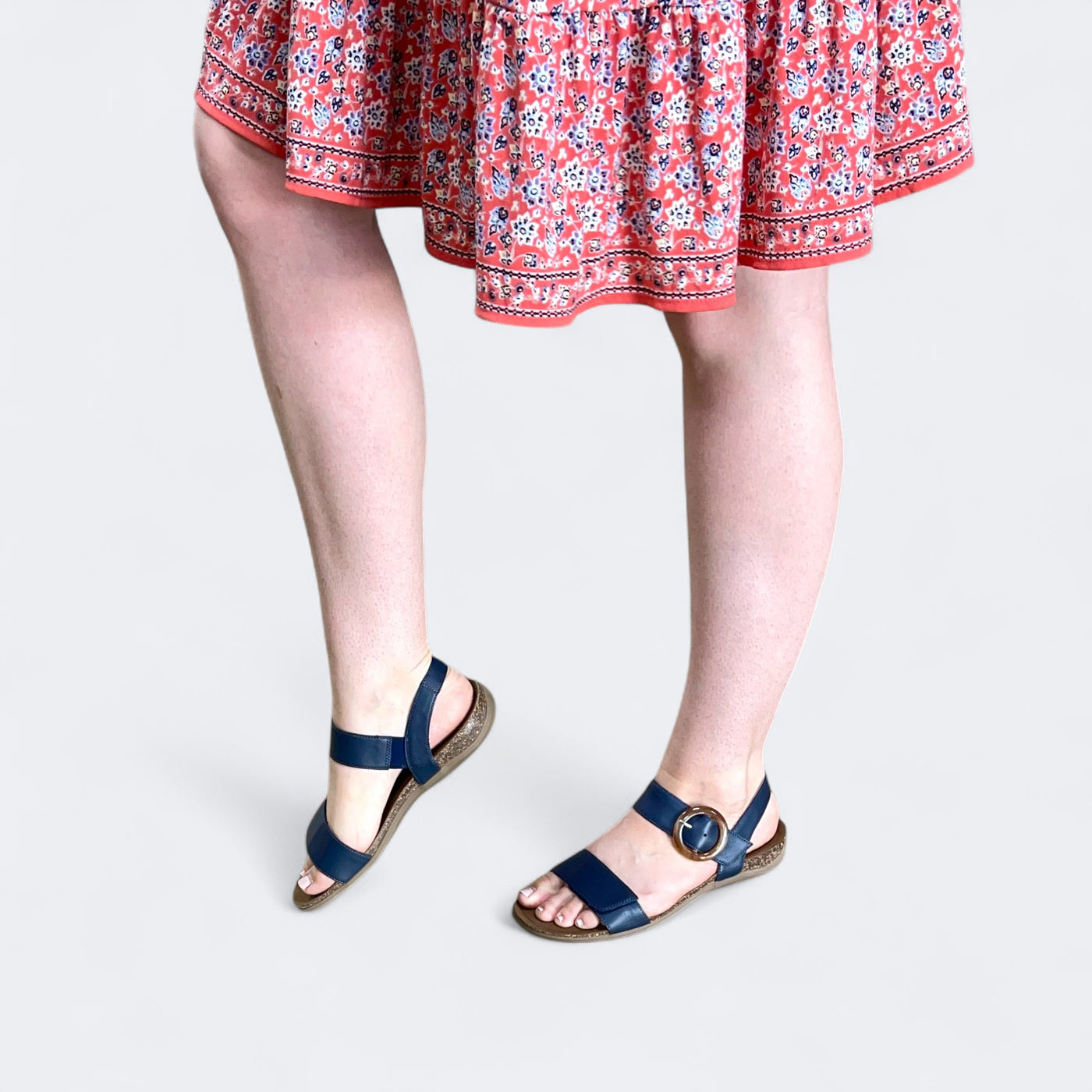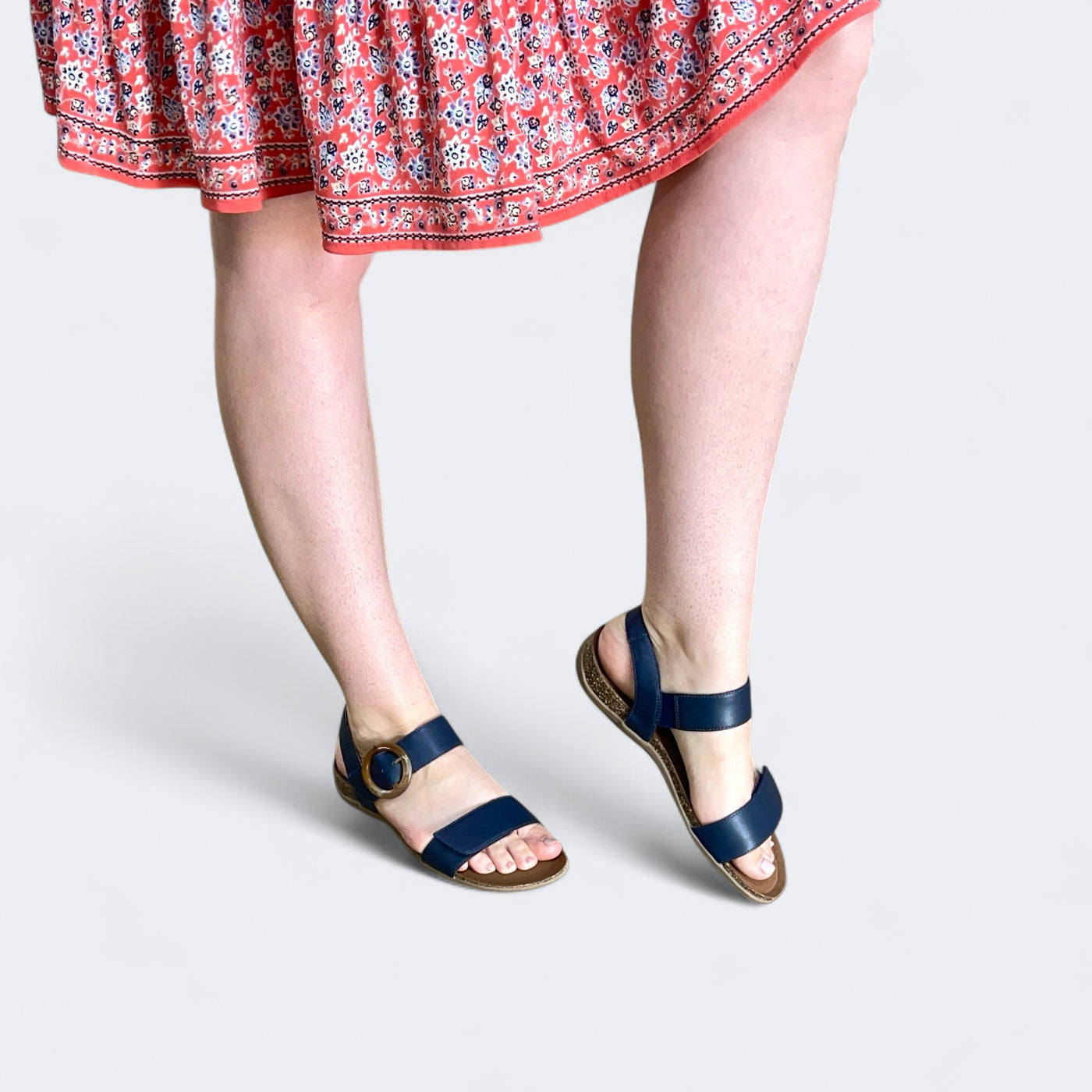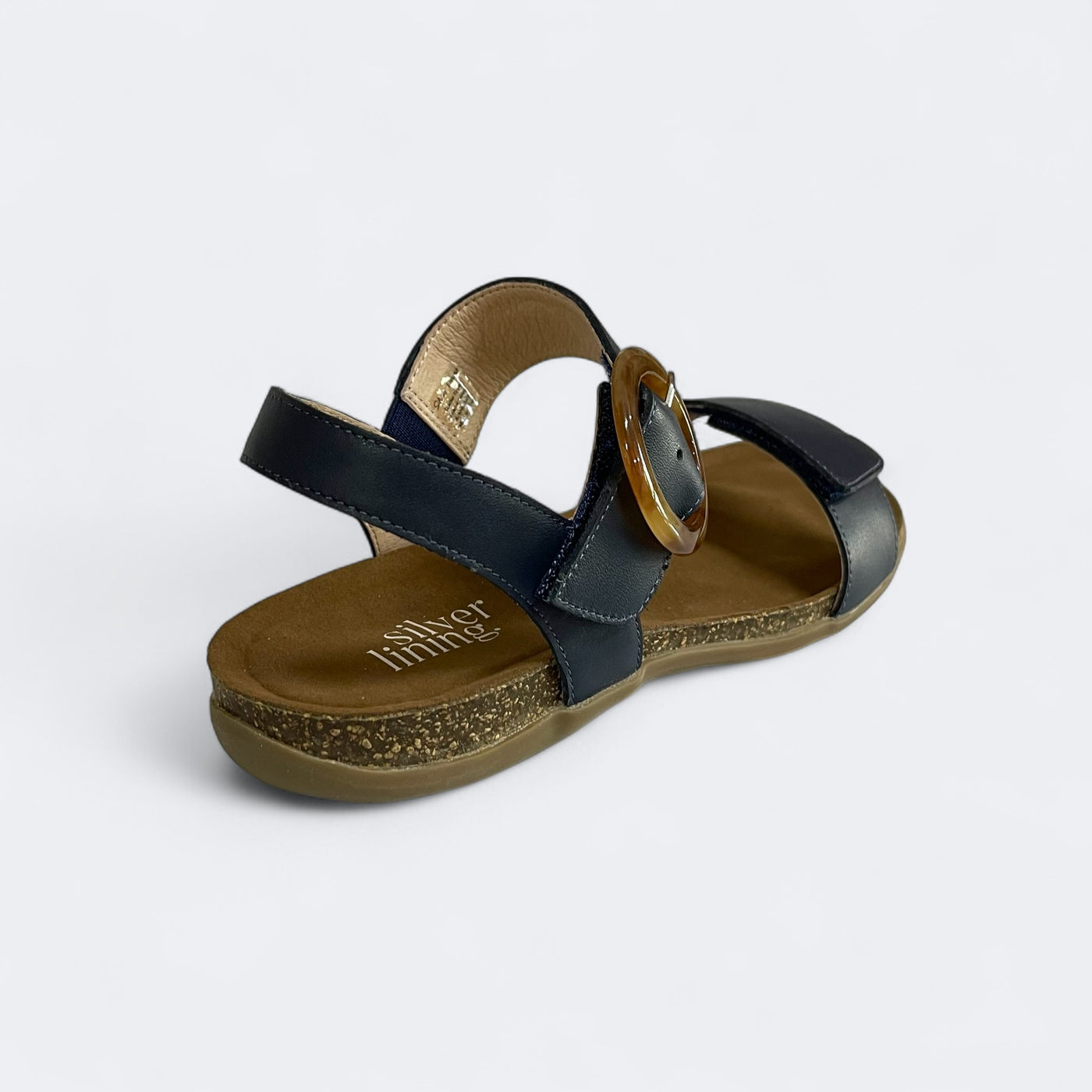 Designed for days on the go, Nebula by Silver Lining brings together comfort and contemporary style. Featuring soft leather straps with easy hook-and-loop adjustment at the toes and ankle, this sandal offers a secure, personalised fit. The tortoiseshell-look buckle adds a chic touch, while the padded insole and flexible sole unit keep every step cushioned — perfect for travel, walking, or everyday wear.